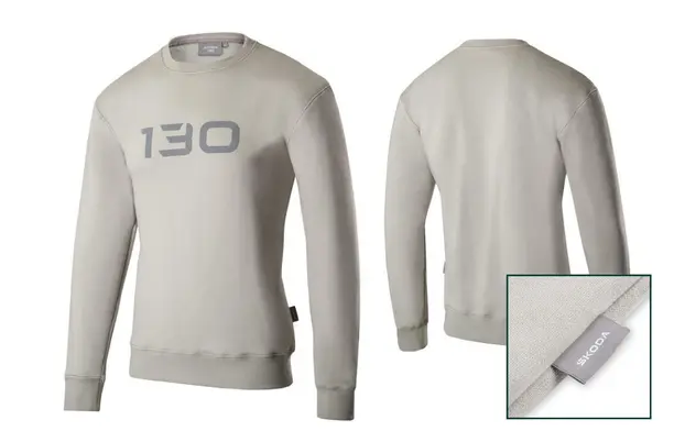 Limitovaná edice k výročí 130 let Škoda Auto. Unisex mikina se semišovým logem 130 a štítkem v bočním švu s logem Škoda. Kulatý výstřih. Dostupné velikosti XS-XXXL.
